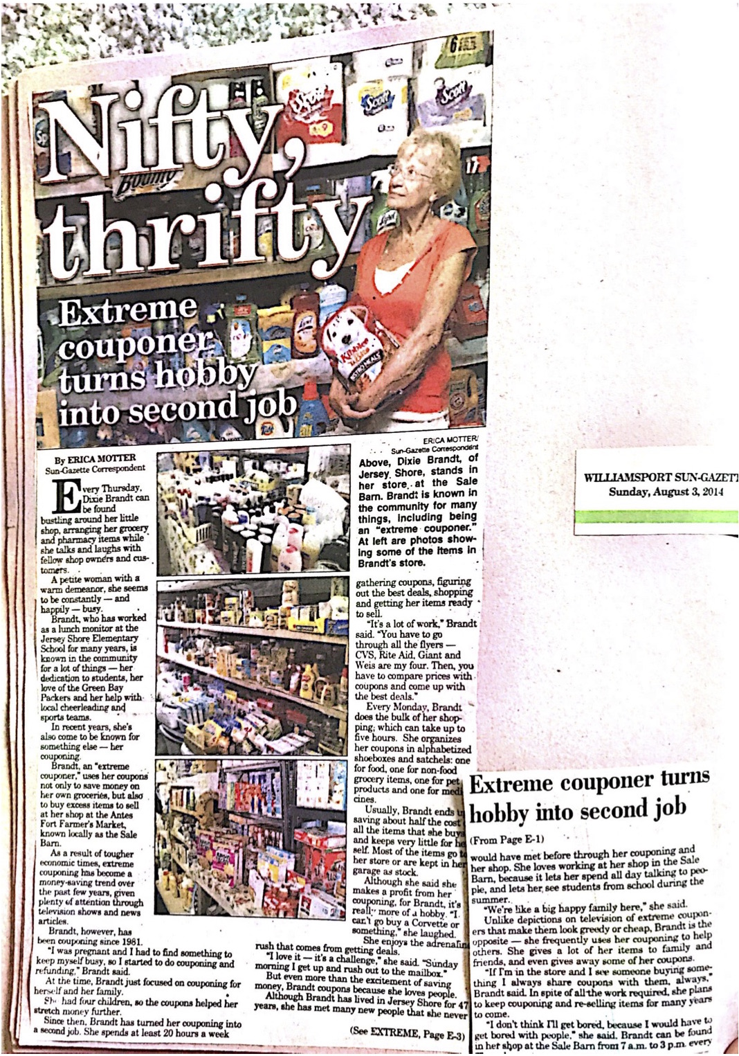Although Brandt has lived in Jersey Shore for 47 years, she has met many new people that she never would have met before through her couponing and her shop.